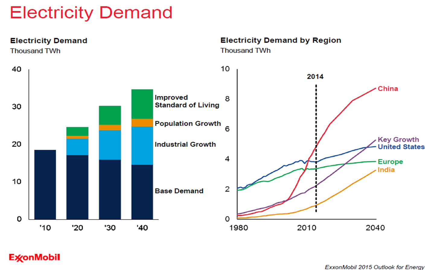 Energy outlook by ExxonMobil reports that over the next few decades, population and income growth - and an unprecedented expansion of the global middle class - are expected to create new demands for energy. We see global energy consumption rising by about 35 percent from 2010 to 2040.